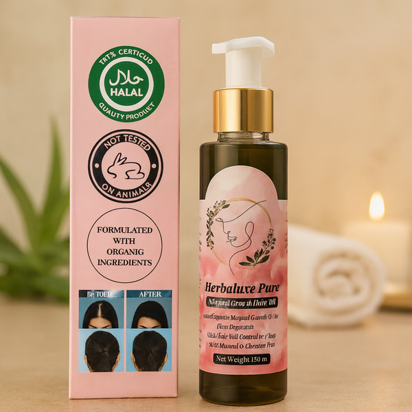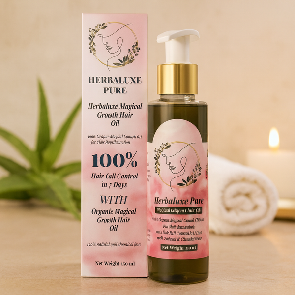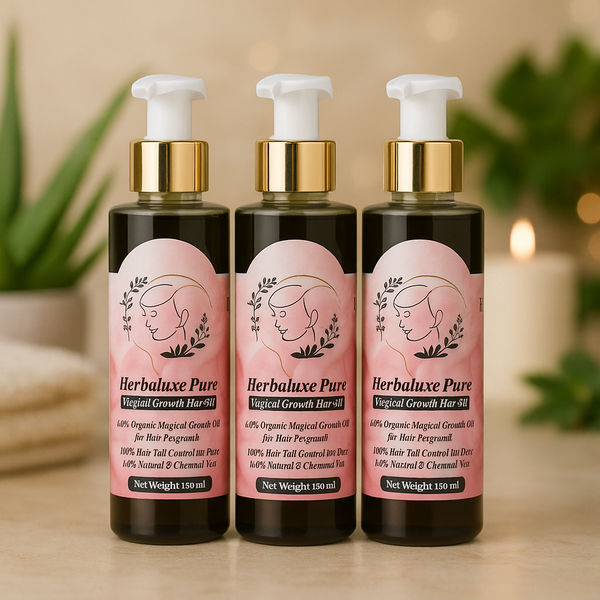 Herbaluxe Oil is a premium, 100% natural hair oil crafted with a blend of organic ingredients to promote healthy hair growth. Free from chemicals, it helps nourish the scalp, control hair fall, and prevent premature graying. Whether you have dry, oily, or damaged hair, our oil works wonders for all hair types, giving you thicker, shinier, and more vibrant hair.